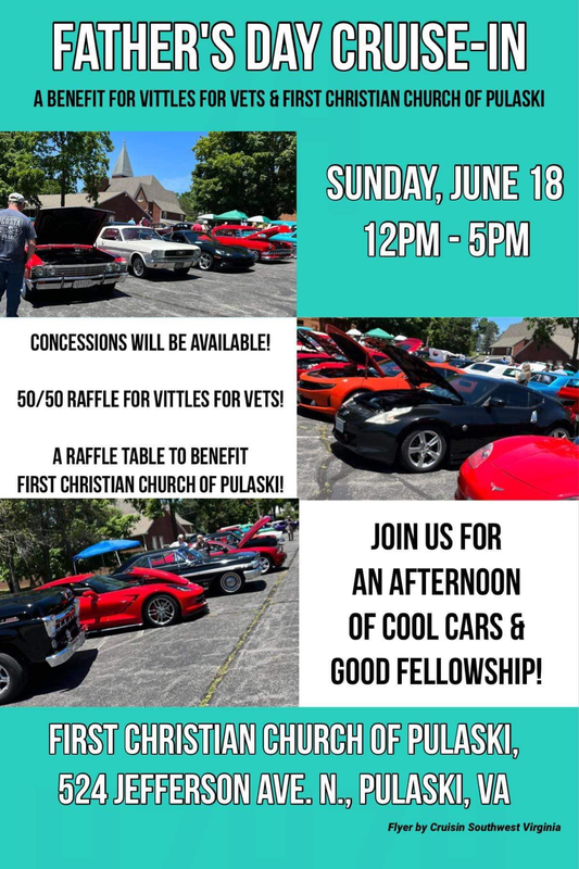 First Christian Church of Pulaski presents a Father's Day Cruise-In to benefit Vittles for Vet and First Christian Church of Pulaski on Sunday, June 18, 2023.