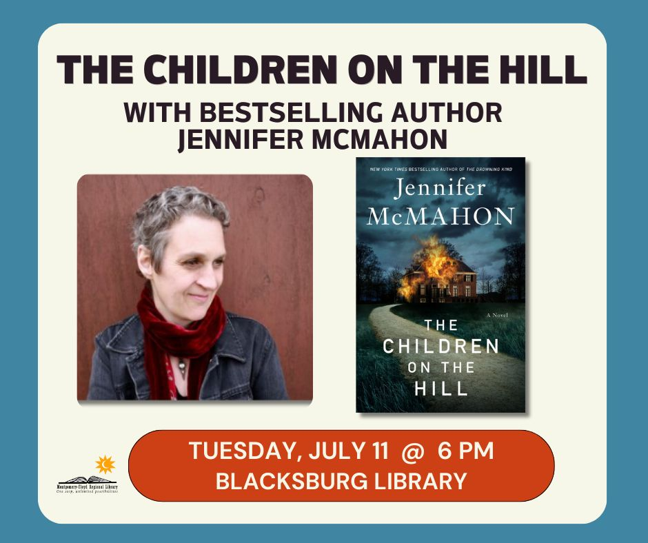 Blacksburg Library invites you to an exciting program featuring an in-person discussion of Jennifer McMahon's genre-defying thriller, "The Children on the Hill". The New York Times bestselling author herself, Jennifer McMahon, will join the discussion via Zoom. Attendees will have the unique opportunity to engage directly with the author, sharing their thoughts and questions about her captivating novels.