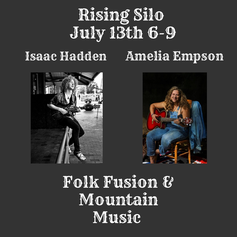 Rising Silo Farm Brewery presents Folk Fusion & Mountain Music with Isaac Hadden & Amelia Empson on Thursday, July 13, 2023.