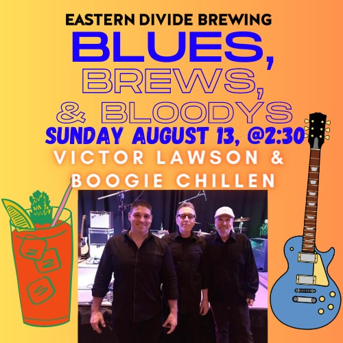 Eastern Divide Brewing and the New River Blues Society presents Blues, Brews and Bloodys with Victor Lawson and the Boogie Chillen Band on Sunday, August 13, 2023.