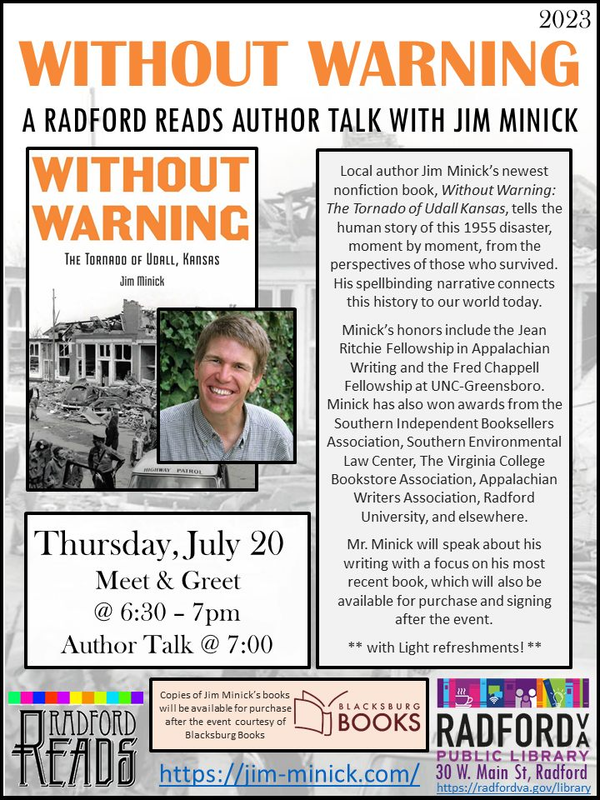 Radford Public Library presents A Radford Reads Author Talk with Jim Minick on Thursday, July 20, 2023.