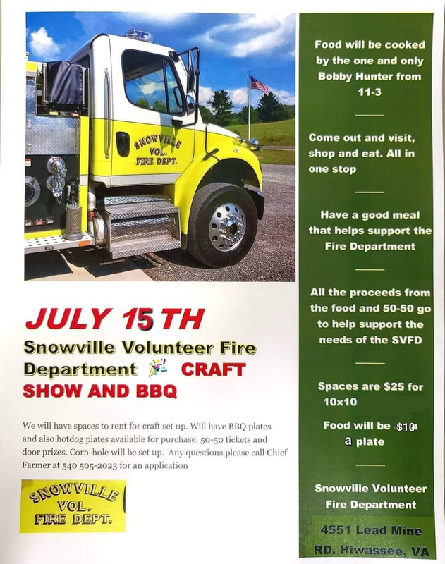 https://www.facebook.com/Snowville-Volunteer-Fire-Department-101404211637896 or call Chief Farmer at 540-505-2023 for any questions.