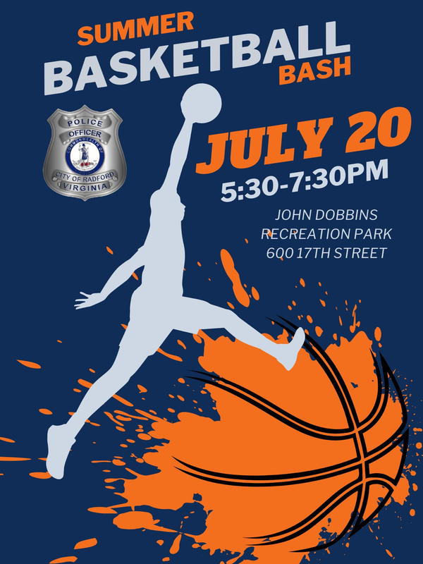 The Radford City Police Department presents their 2023 Summer Basketball Bash on Thursday, July 20, 2023 at John Dobbins Park in Radford, VA.