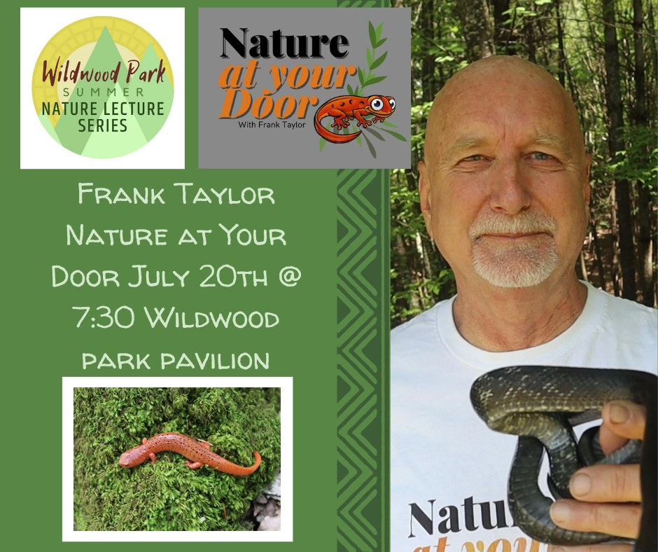 The 2023 Wildwood Outdoor Classroom Summer Lecture Series continues with the program "Salamanders" with Frank Taylor and Nature at your Door on Thursday, July 20, 2023 at the Outdoor Pavilion at Wildwood Park in Radford, VA.