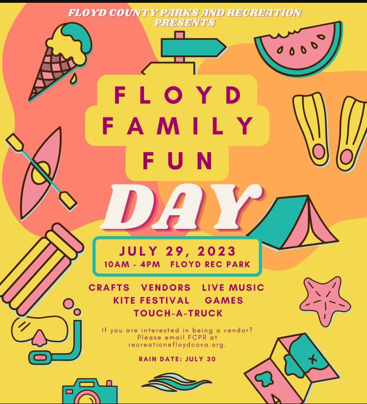 Floyd County Park and Rec presents the Floyd Family Fun Day on Saturday, July 29, 2023 at Floyd Recreation Park.
