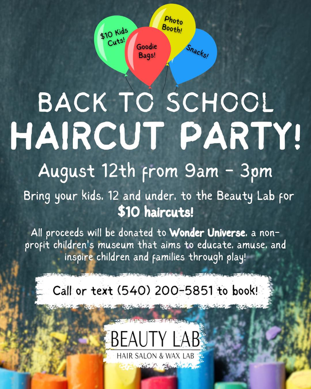 The Beauty Lab Hair Salon & Wax Lab presents a Back to School Cutathon to benefit Wonder Universe on Saturday, August 12, 2023.