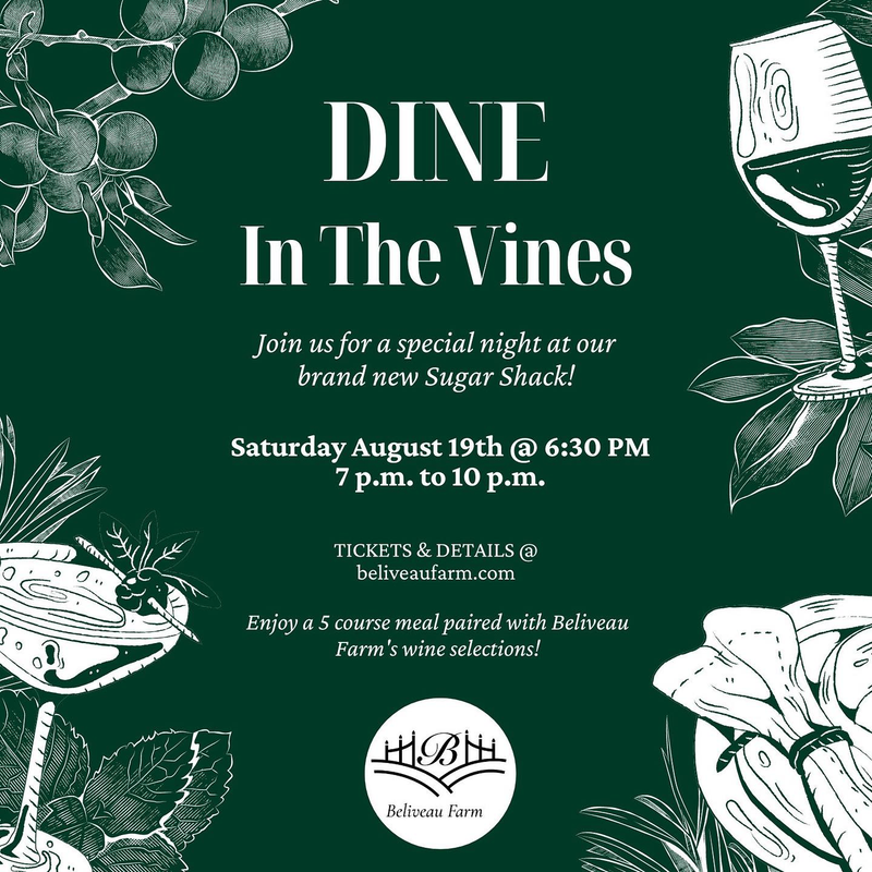 Beliveau Farm Winery presents the Dine In The Vines 2023 on Saturday, August 19, 2023.