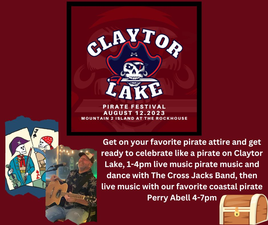Get on your favorite pirate attire and get ready to celebrate like a pirate on Claytor Lake! Fun for adults and families! Enjoy live pirate music and dances with The Crossjacks from 1:00-4:00 PM followed by music from our favorite coastal pirate Percy Abell from 4:00-7:00 PM.