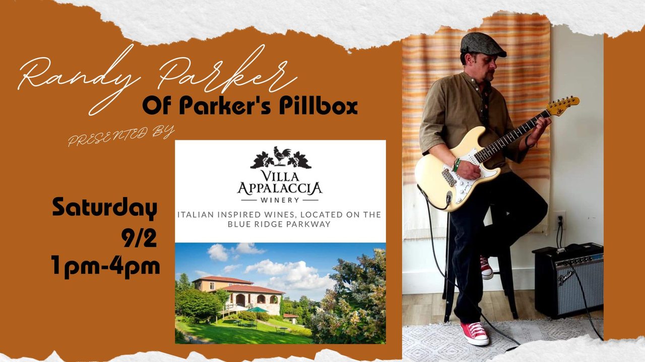 Villa Appalaccia Winery presents Music at the Villa with Randy Parker of Parker's Pillbox performing a solo show on Saturday, September 2, 2023.