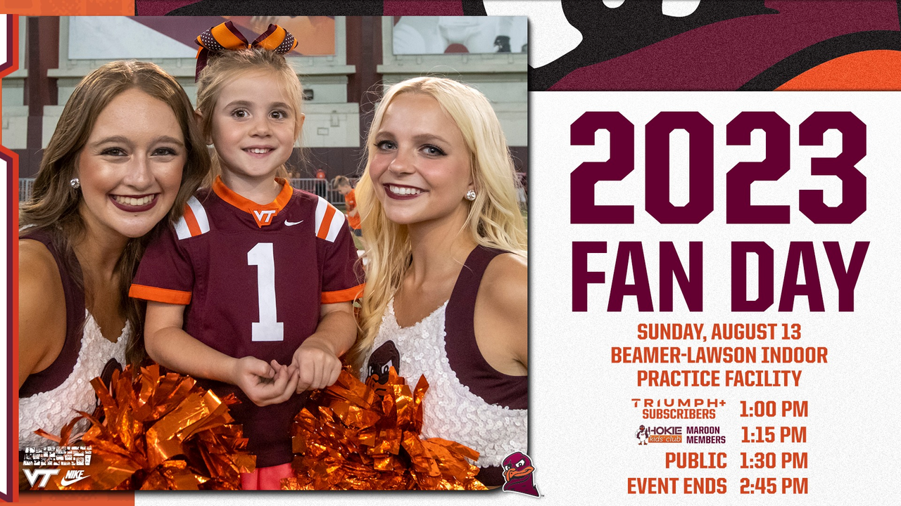 Virginia Tech Football and the Virginia Tech Athletic Department presents the 2023 Virginia Tech Football Fan Day on Sunday, August 13, 2023 at the Virginia Tech Indoor Practice Facility.