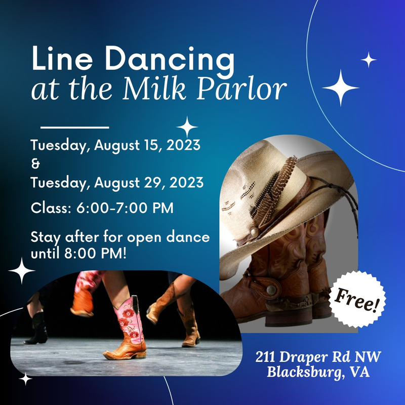 The Milk Parlor presents a Free Line Dancing Class on Tuesday, August 29, 2023.