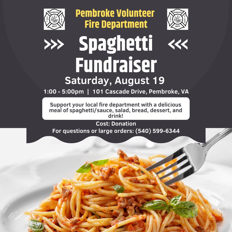 The Pembroke Volunteer Fire Department presents a Spaghetti Fundraiser on Saturday, August 19, 2023.