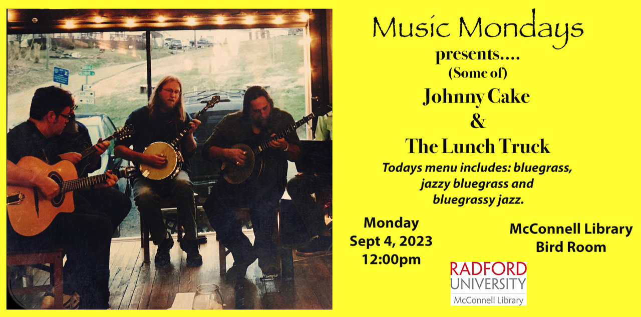 McConnell Library, on the campus of Radford University, continues their Music Mondays series with some of the members of Johnny Cake & The Lunch Truck on Monday, September 4, 2023 inside the Bird Room.