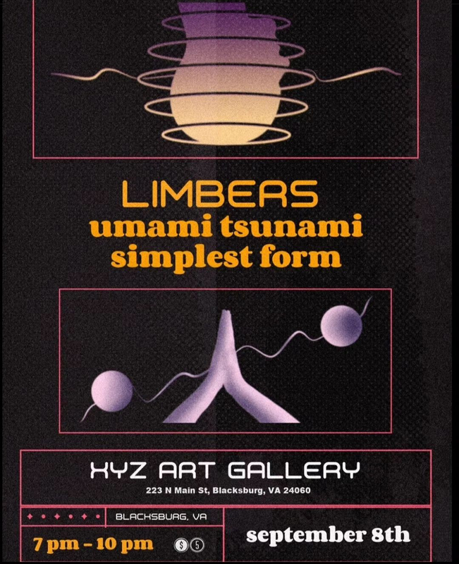 XYZ Art Gallery presents a Three Band Concert with Limbers, Umami Tsunami and Simplest Form on Friday, September 8, 2023.