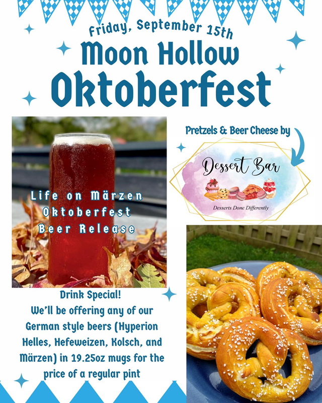 Moon Hollow Brewing presents their 2023 Oktoberfest with Music from Furious Jones on Friday, September 15, 2023.