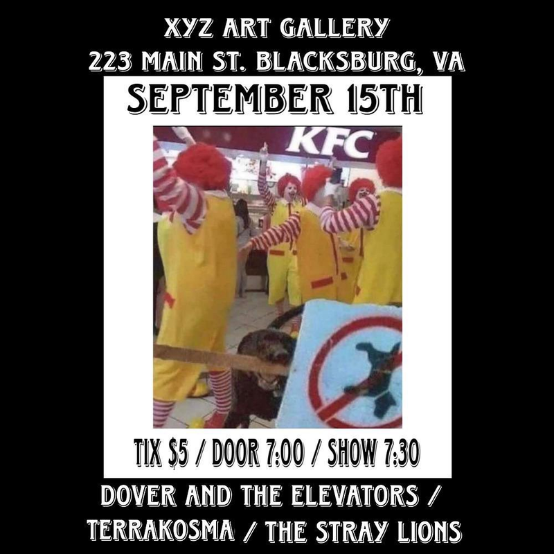 XYZ Art Gallery presents Three Band Concert with Dover and The Elevators, Terrakosma and The Stray Lions on Friday, September 15, 2023.