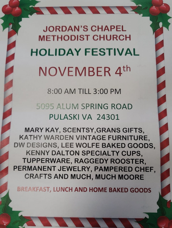 Jordan's Chapel United Methodist Church presents their 2023 Holiday Festival on Saturday, November 4, 2023.