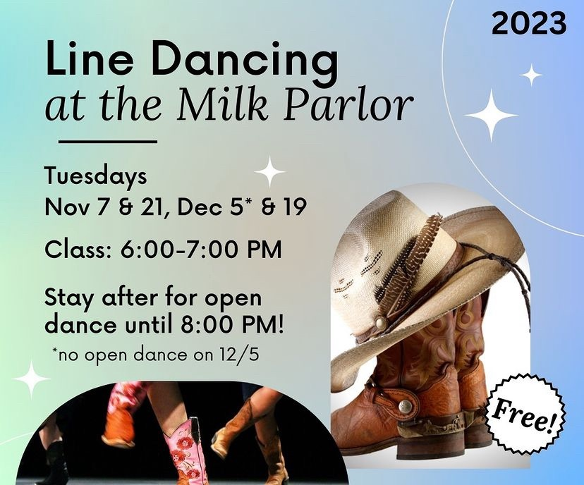 The Milk Parlor presents a Free Line Dancing Class on Tuesday, December 5, 2023.