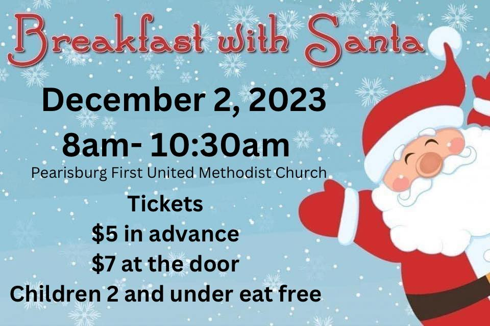 Pearisburg Junior Women's Club presents their 38th Annual Breakfast with Santa on Saturday, December 2, 2023 at Pearisburg First United Methodist Church.