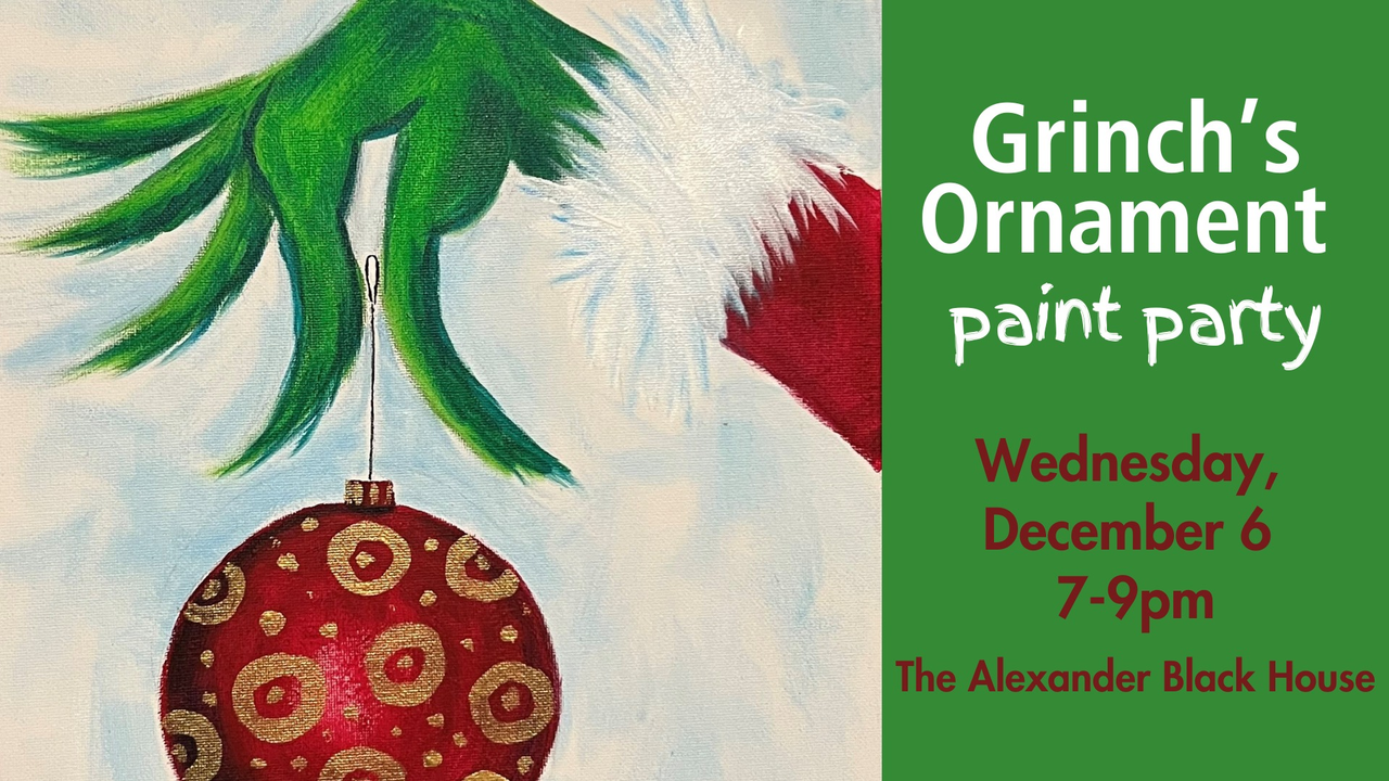 The Alexander Black House & Cultural Center presents a Paint Party painting the Grinch's Ornament on Wednesday, December 6, 2023.