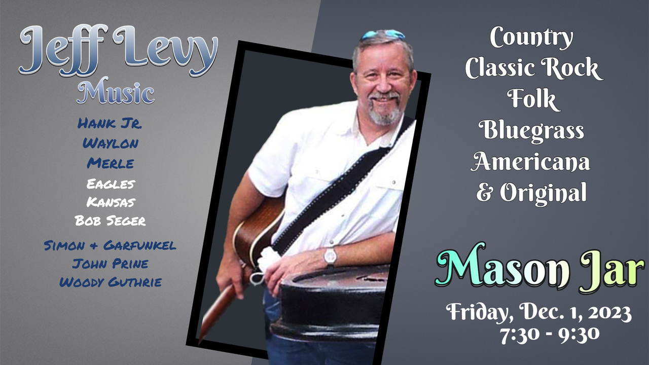 The Mason Jar at Claytor Lake presents Jeff Levy in concert on Friday, December 1, 2023.