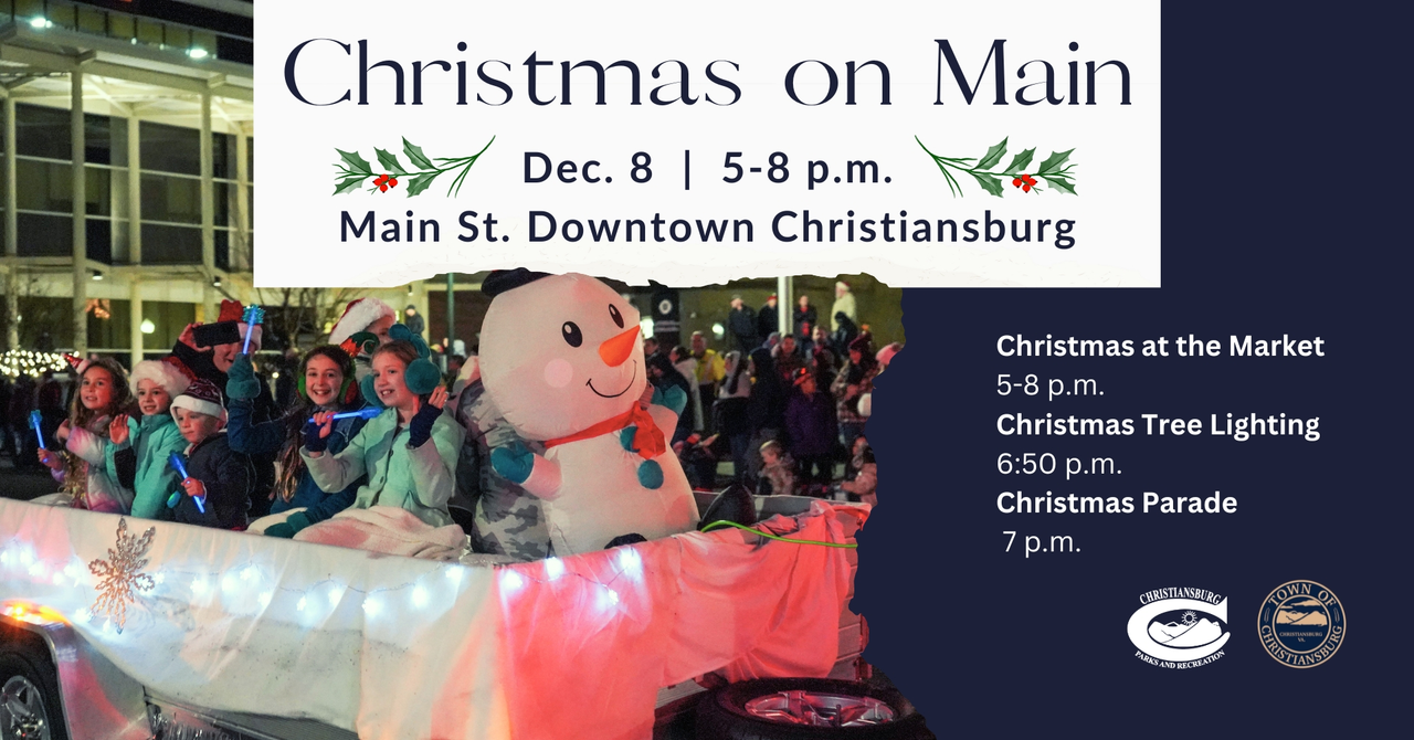 The Town of Christiansburg presents their annual Christmas on Main on Friday, December 9, 2022 at various locations in downtown Christiansburg, VA.