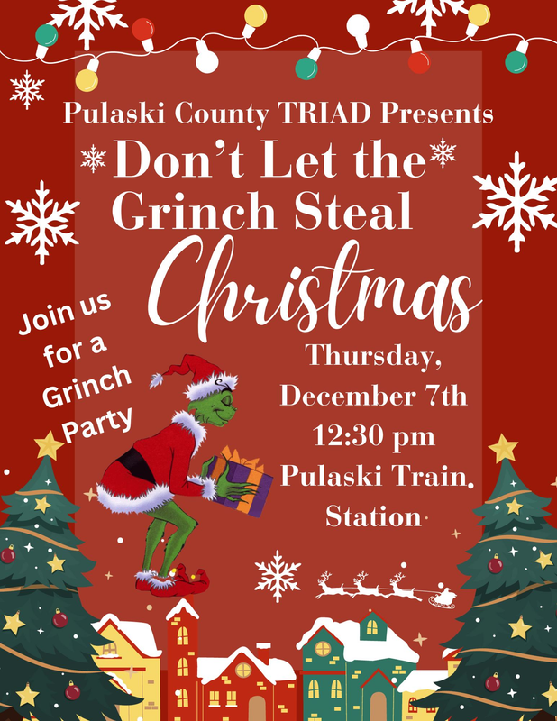 The Pulaski County Triad presents the program "Don't Let the Grinch Steal Christmas" on Thursday, December 7, 2023 at the Pulaski Train Station.