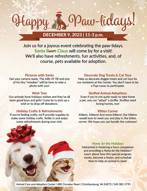 Montgomery County Animal Care and Adoption Center presents their annual Happy Paw-lidays event on Saturday, December 9, 2023.