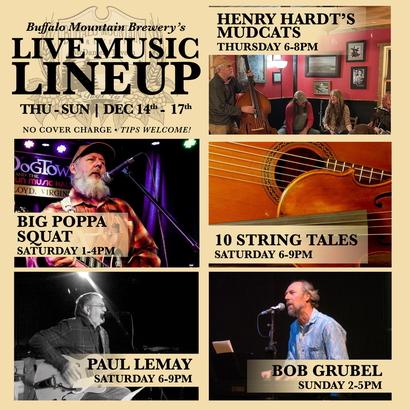 Buffalo Mountain Brewery presents Henry Hardt's Mudcats in concert on Thursday, December 14, 2023.