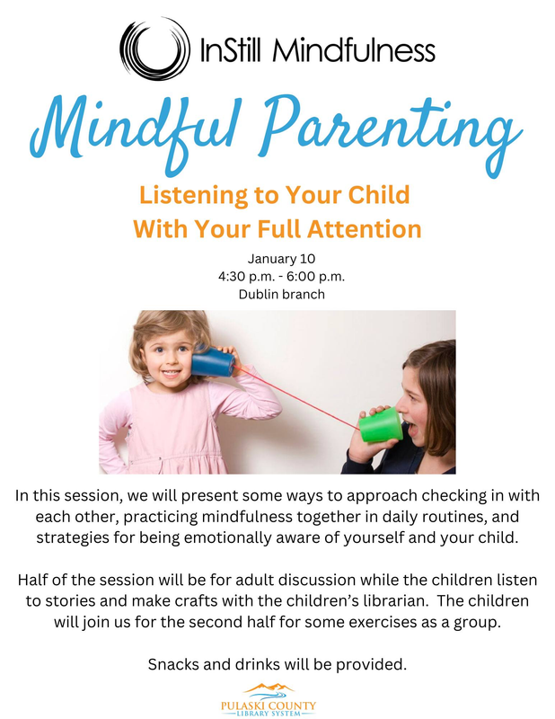 InStill Mindfulness presents the program "Mindful Parenting: Listening to Your Child with Your Full Attention" on Wednesday, January 10, 2024 at the Dublin Library.