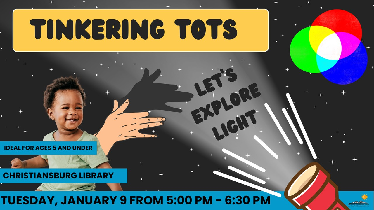 Christiansburg Library presents the program "Tinkering Tots: Let's Explore Light" on Tuesday, January 9, 2024.