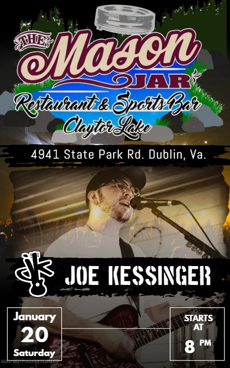 The Mason Jar at Claytor Lake presents Joe Kessinger in concert on Saturday, January 20, 2024.
