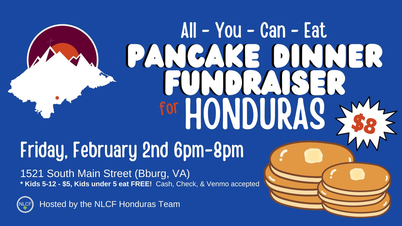 NLCF presents their annual All You Can Eat Pancake Dinner Fundraiser for Honduras between 6:00-8:00 PM on Friday, February 2, 2024.