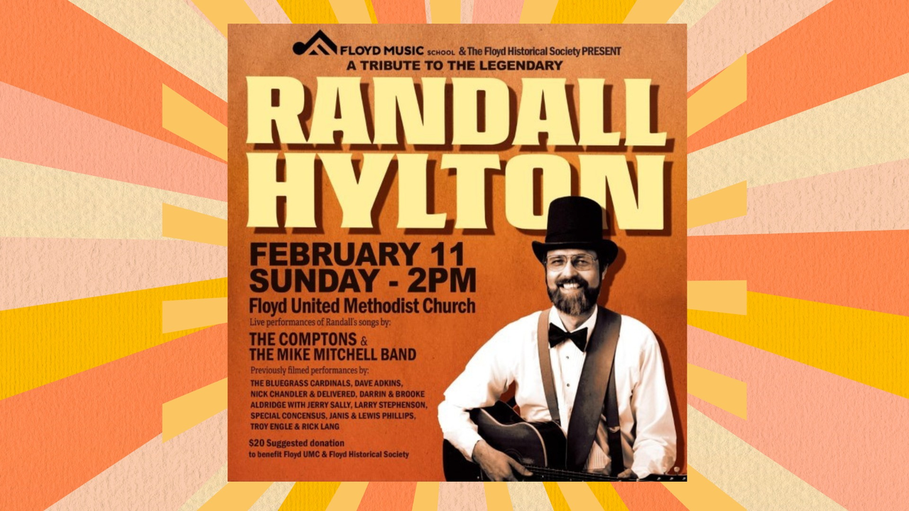 The Floyd Historical Society and the Floyd Music School presents "A Tribute to the Legendary Randall Hylton" with performances from The Comptons and The Mike Mitchell Band on Sunday, February 11, 2024 at the Floyd United Methodist Church.