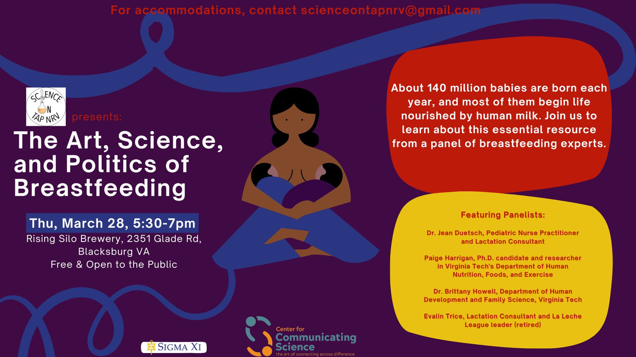 Science on Tap - New River Valley presents their March program "The Art, Science, and Politics of Breastfeeding" on Thursday, March 28, 2024 at Rising Silo Farm Brewery.