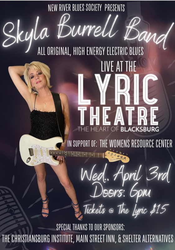 The New River Blues Society (NRBS) presents the Skyla Burrell Band in concert on Wednesday, April 3, 2024 at The Lyric Theatre.