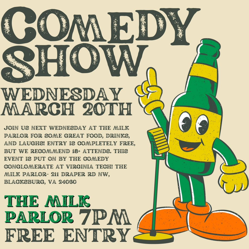 The Milk Parlor presents a Comedy Night with The Comedy Conglomerate at Virginia Tech on Wednesday, March 20, 2024.