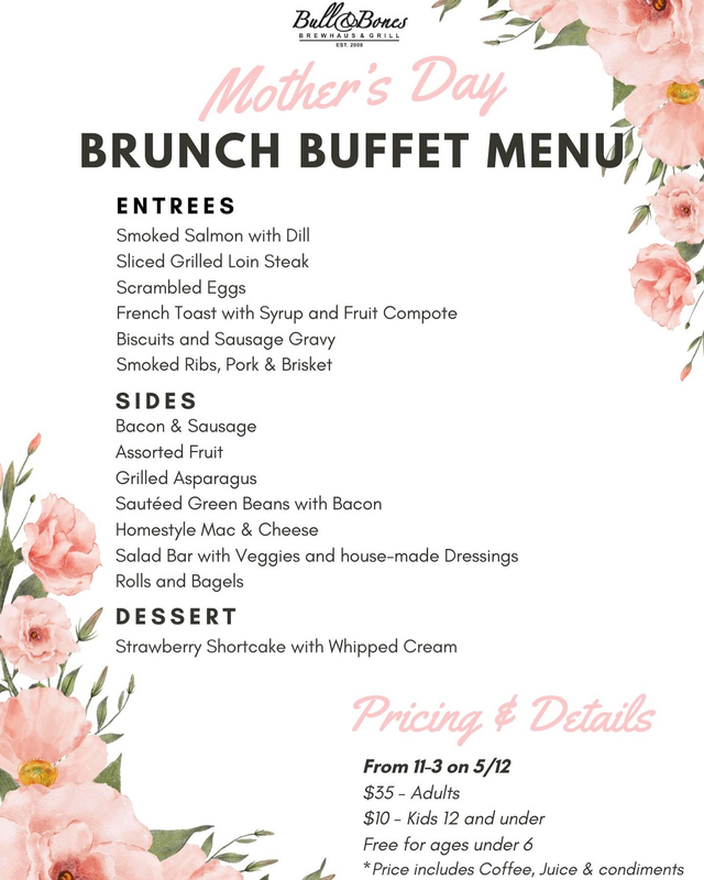 Bull & Bones Brewhaus & Grill presents a Mother's Day Brunch Buffet on Sunday, May 12, 2024.