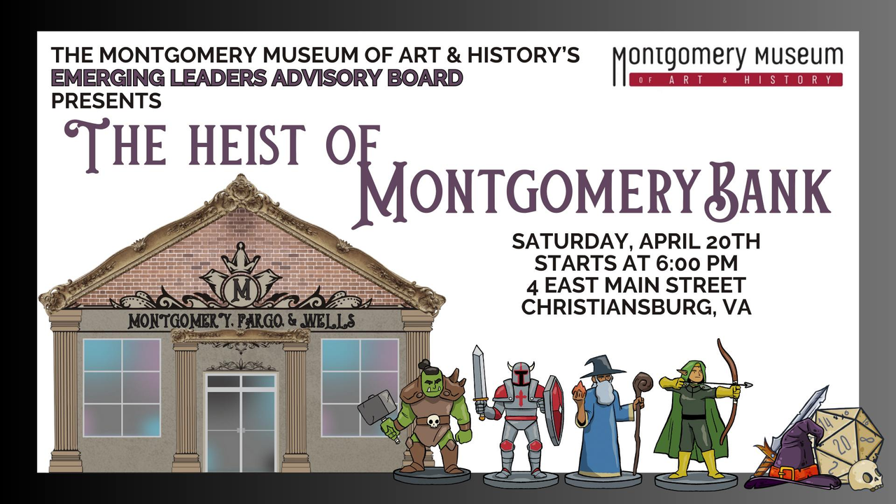 The Montgomery Museum of Art & History presents "The Heist of Montgomery Bank" Live Play D&D Experience on Saturday, April 20, 2024.