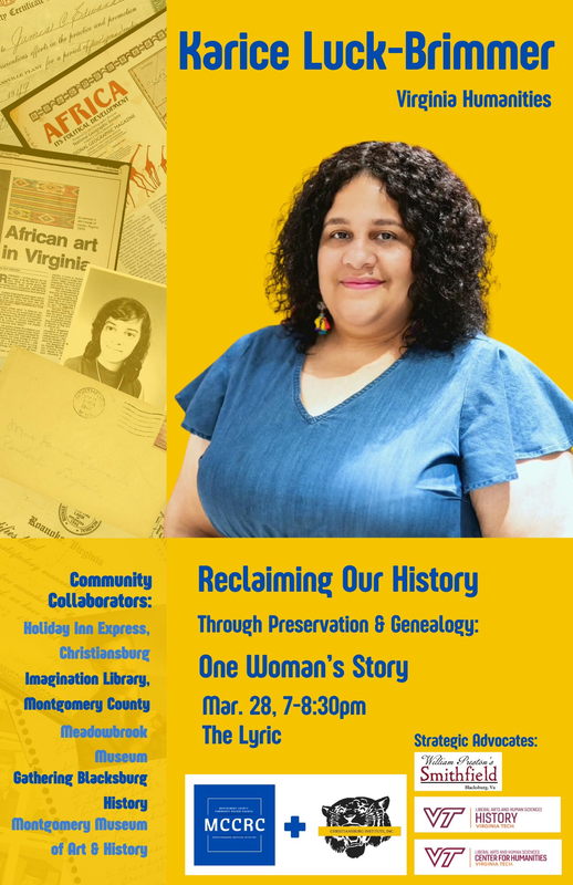 The Christiansburg Institute (CI, Inc.) and Montgomery County Community Review Council (MCCRC) presents the program "Reclaiming Our History through Genealogy & Preservation: One Woman’s Story" on Thursday, March 28, 2024 at The Lyric Theatre.