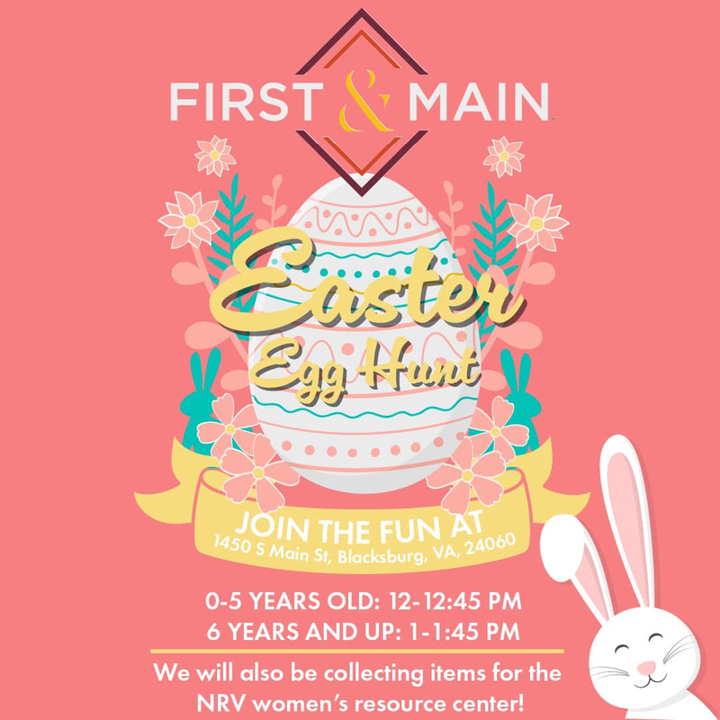 Spring is in full swing, and what better way to celebrate than with an Easter Egg Hunt at First and Main Blacksburg? Bring your family and friends for an afternoon filled with joy and laughter!
