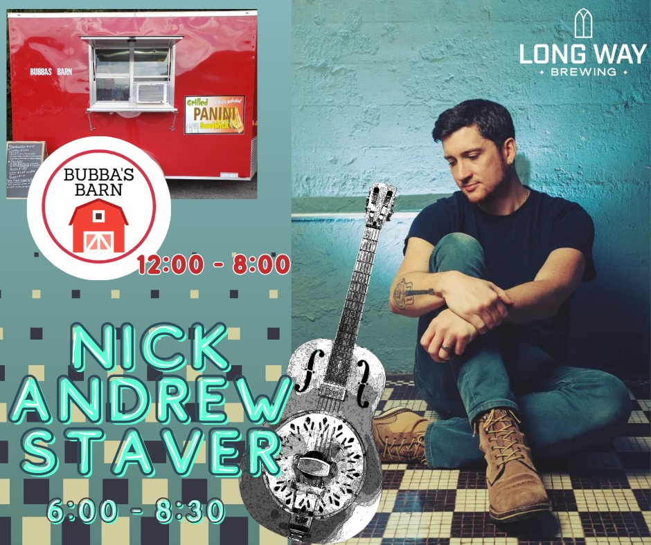 Long Way Brewing presents Nick Andrew Staver in concert on Saturday, April 6, 2024.