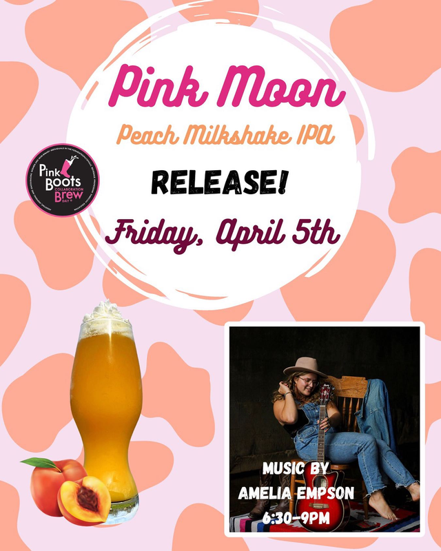 Moon Hollow Brewing presents their 5th Annual Pink Moon Peach Milkshake IPA Release with Live Music from Amelia Empson on Friday, April 5, 2024.