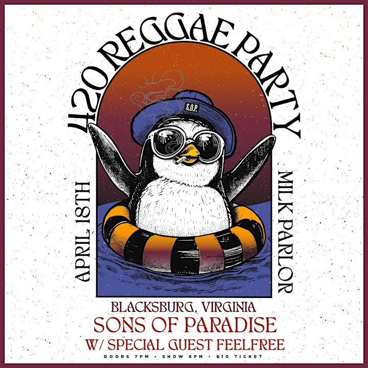 The Milk Parlor presents a 4/20 Reggae Party with Sons of Paradise and special guests FeelFree on Thursday, April 18, 2024.