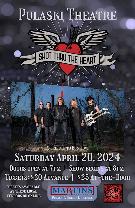 https://www.eventbrite.com/e/shot-thru-the-heart-a-tribute-to-bon-jovi-tickets-848647947857?aff=next3days and in-person at Martin's Pharmacy (Pulaski & Dublin locations).
