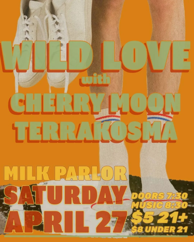The Milk Parlor presents a Three Band Concert with Wild Love, Cherry Moon and Terrakosma on Saturday, April 27, 2024.