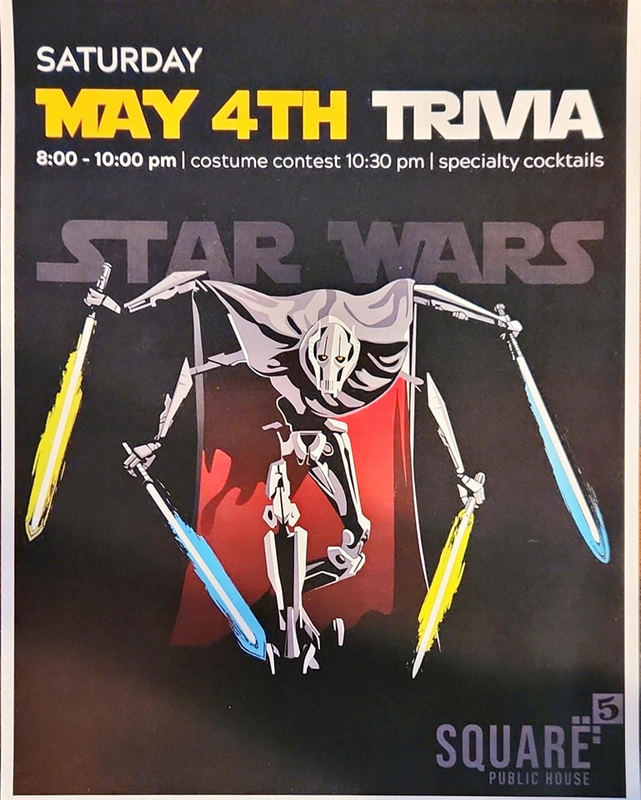 Square 5 Public House presents May 4th Trivia and Costume Contest on Star Wars Day on Saturday, May 4, 2024.