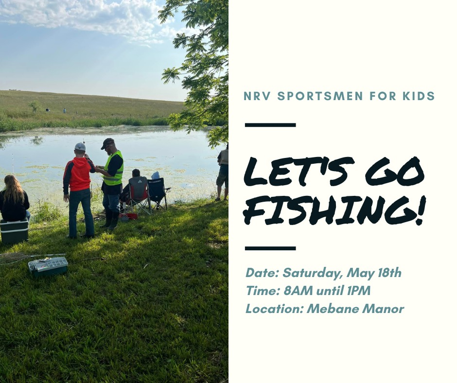 NRV Sportsmen For Kids presents their Annual Kids Fishing Day on Saturday, May 18, 2024 at Mebane Manor in Dublin, VA.