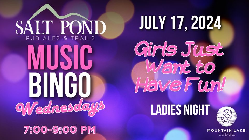 Mountain Lake Lodge continues their Music Bingo Wednesdays with the theme "Girls Just Want to Have Fun!" on Wednesday, July 17, 2024 at the Salt Pond Pub.