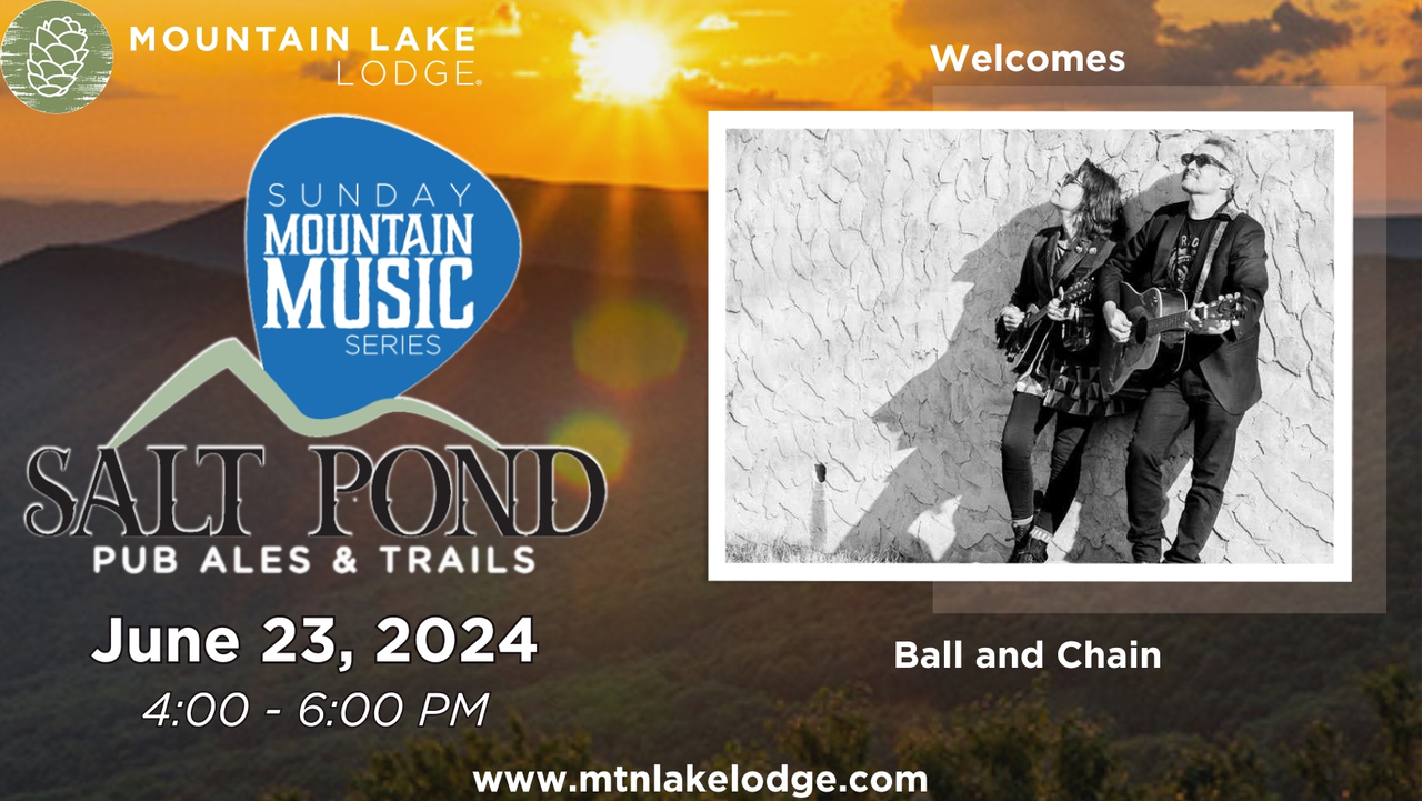 Mountain Lake Lodge continues their Sunday Mountain Music Series with Ball & Chain on Sunday, June 23, 2024 at the Salt Pond Pub.